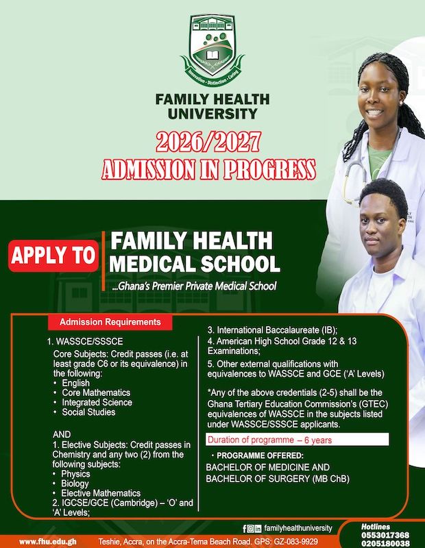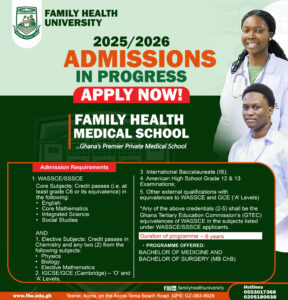In addition, on June 2, 2014 the National Accreditation Board (now Ghana Tertiary Education Commission [GTEC]) issued a Certificate of Authorisation to the Family Health Hospital to establish the Family Health Medical School, which is Ghana’s Premier Private Medical School. Thereafter, the National Accreditation Board also gave the Family Health Medical School accreditation on April 01, 2015.
